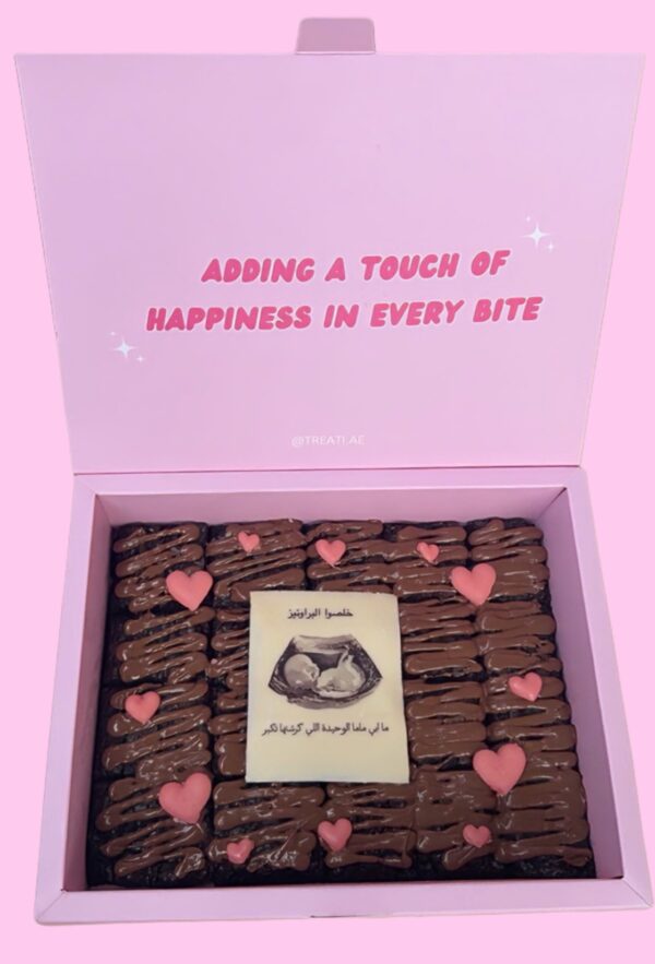 20 pcs of milk chocolate brownie with pregnancy reveal theme